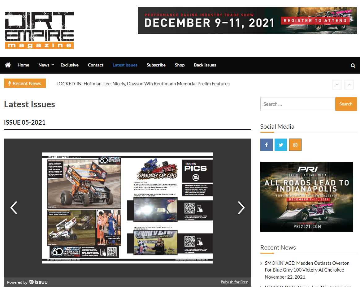 Subscribe today! Get DIRT EMPIRE MAGAZINE shipped directly to your mailbox, 8 times a year (monthly during the racing season, semi-monthly in the off-season). For just $36* a year, you